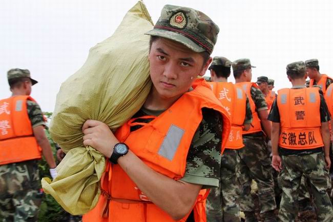711深夜,武警安徽总队146名官兵开拔到省农垦华阳河农场抗洪一线,紧急支援防汛抢险。当天下午16时许,武警安徽第一支队和安庆市支队一接到省防指的支援命令,便立即集结,于深夜23点多分别抵达该农场一、五分场待命。