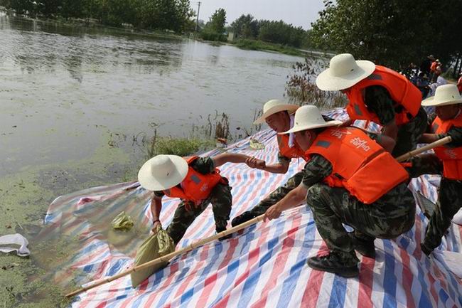 华阳河农场抗洪一线 武警官兵来了!