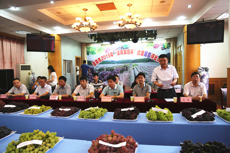 8202015“淮南农场杯优质葡萄评比大赛圆满落幕。本次大赛由淮南市科协携手林学会主办,淮南农场等单位承办,中邮淮南分局协办,淮南市及大通区农林科部门单位负责同志和农场领导宗志贵、安继凤、孙成玉出席开幕式,淮南新闻媒体进行了现场采访报道。